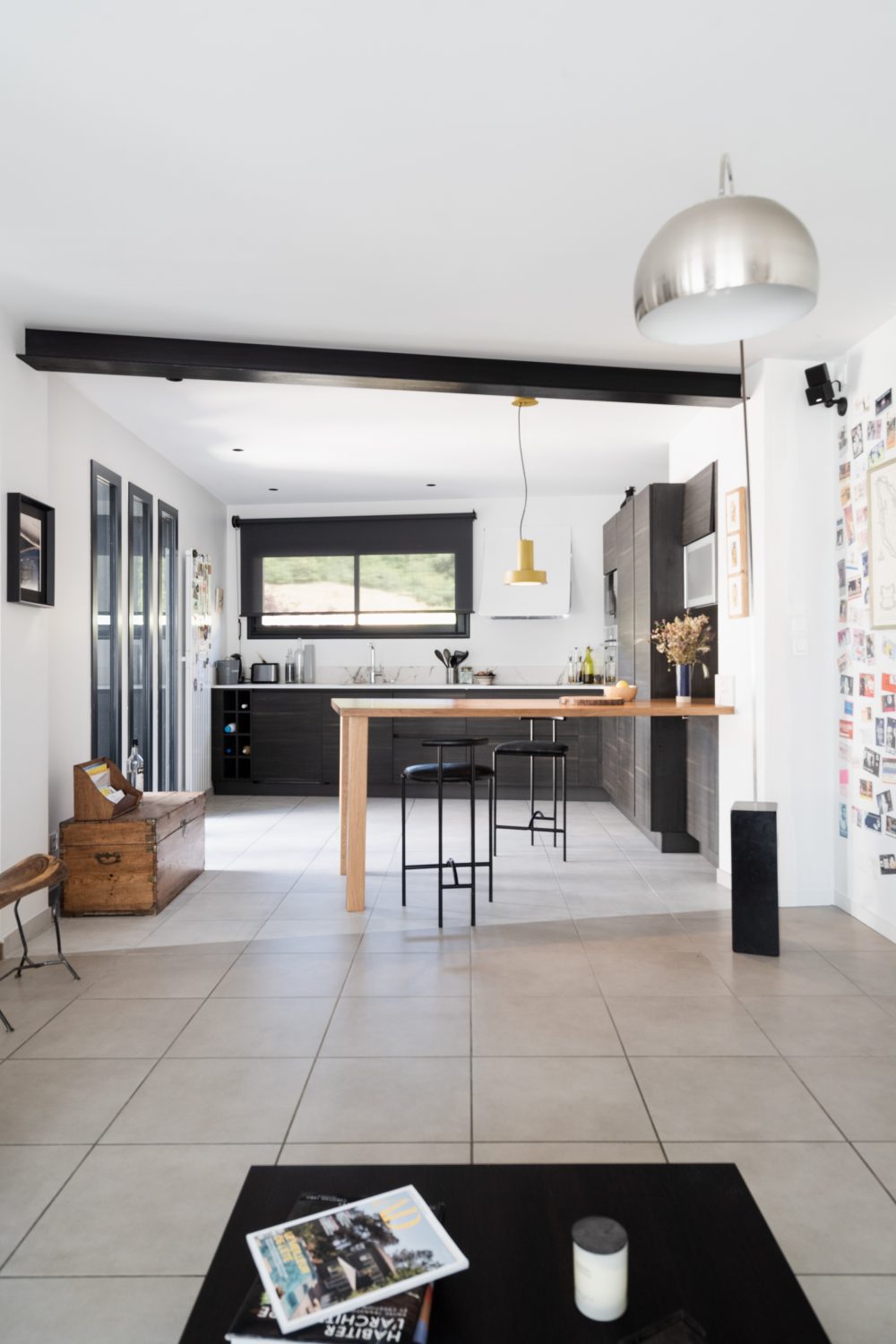 La seconde extension s’inscrit dans une refonte globale de l’aménagement intérieur. Conçue comme un volume généreux et contemporain, elle accueille une nouvelle cuisine ouverte, en lien direct avec le salon.