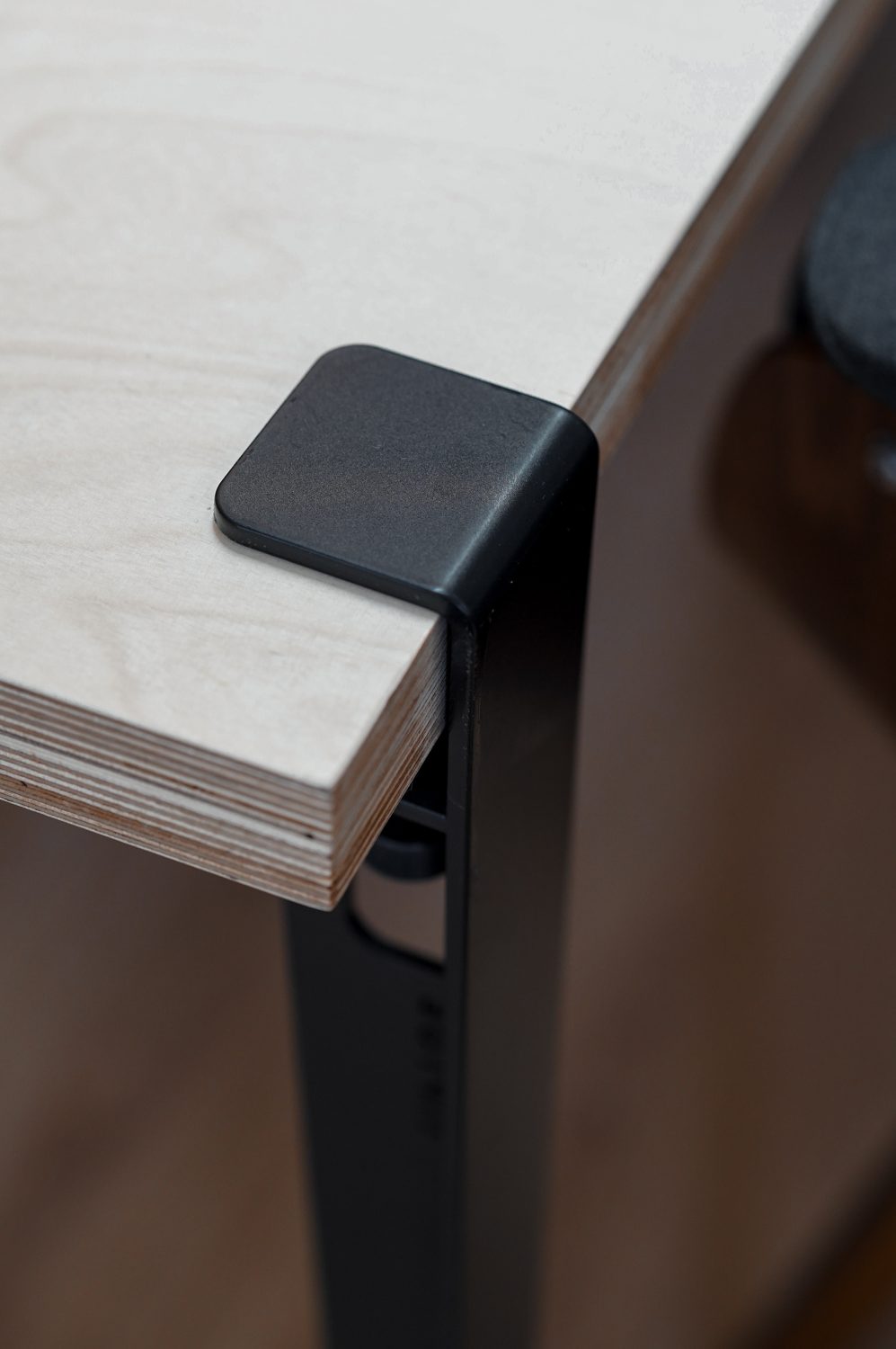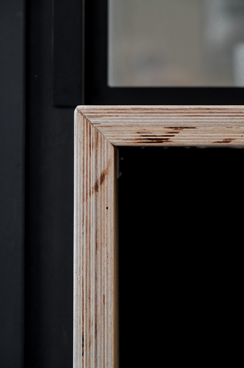 • Tasseaux ajourés en bois blond sur fond noir, apportant un contraste élégant