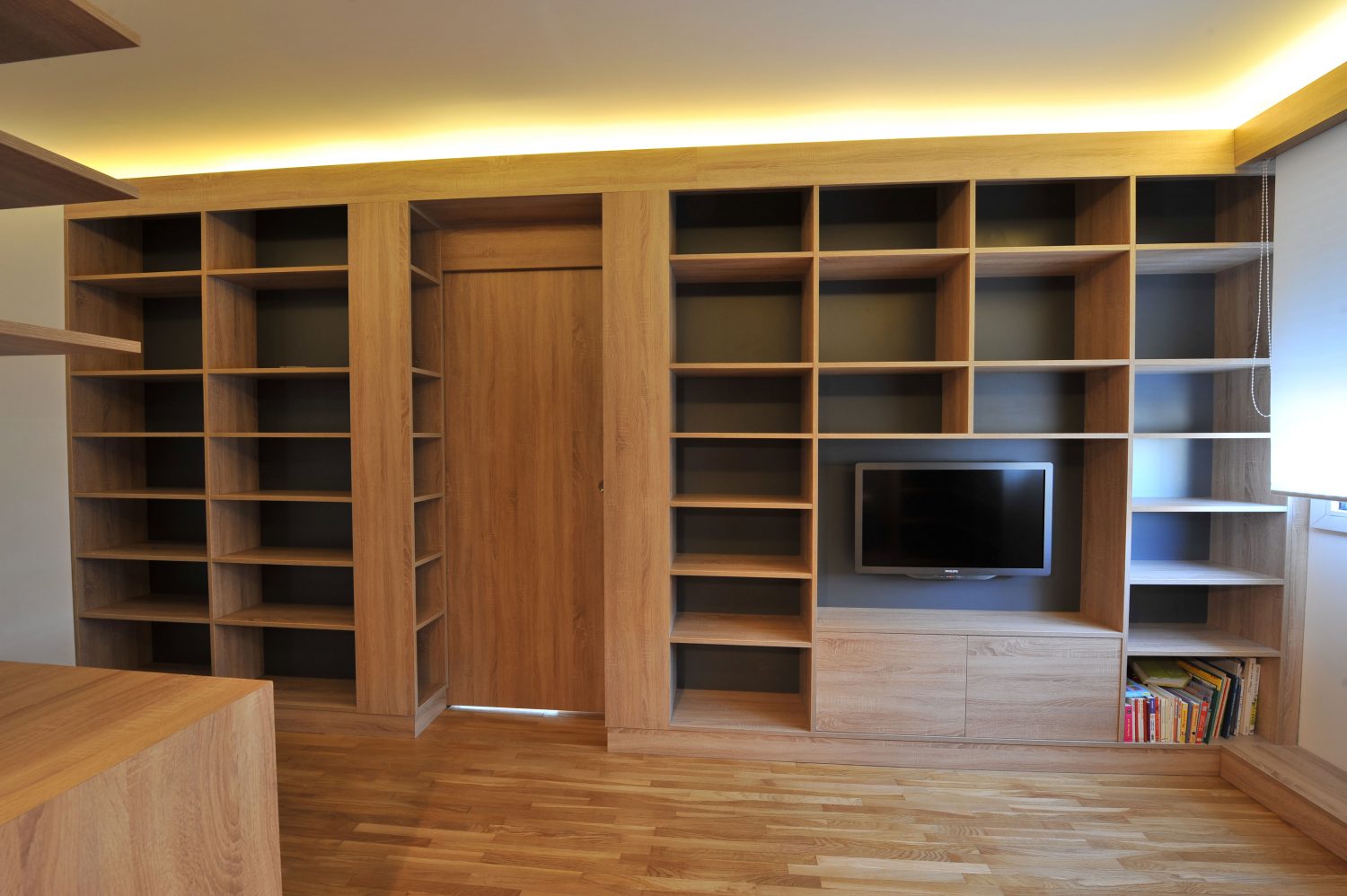 Pour ce projet, nous avons accompagné les propriétaires d’un appartement avec terrasse dans la conception d’une bibliothèque intégrée. L’objectif était d’optimiser l’espace, d’intégrer un coin télévision, des rangements fermés et d’apporter une touche contemporaine à l’aménagement intérieur.