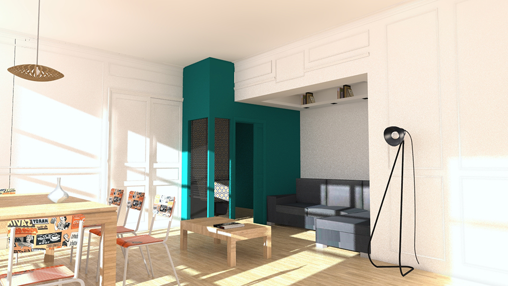 Ce projet concerne la transformation d’un appartement du XIXe siècle, caractérisé par une présence marquée des boiseries et un agencement contraignant. L’objectif était de repenser la distribution des espaces afin d’optimiser le salon, d’intégrer des rangements et de rendre l’espace nuit plus fonctionnel.