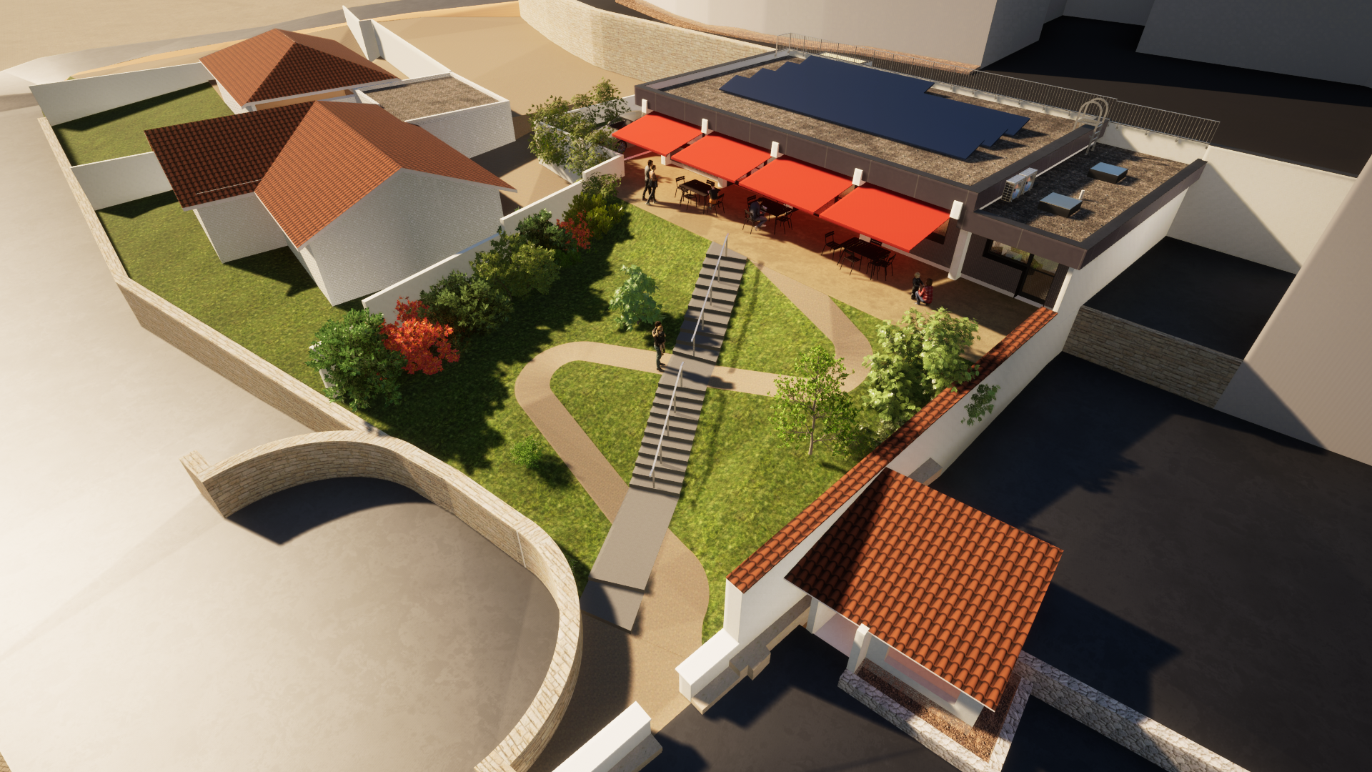 Le projet vise à transformer l’ancien réfectoire de la maison de retraite de Létra en un espace polyvalent accueillant un bar, un local associatif et un bureau de poste.