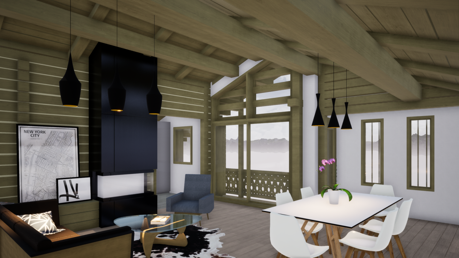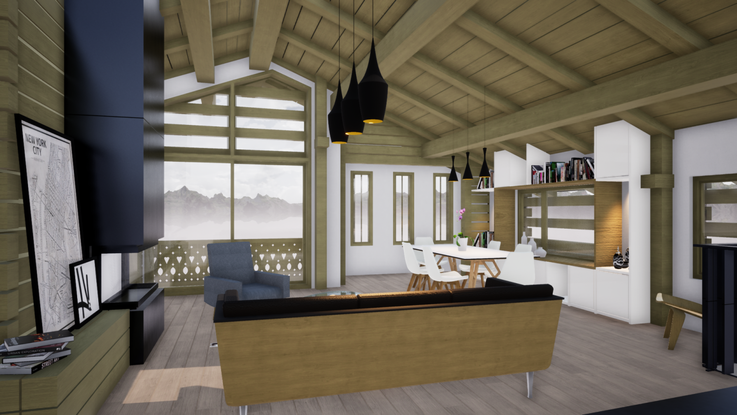 Ce projet illustre une approche respectueuse du patrimoine, où chaque intervention a été pensée pour s’inscrire en harmonie avec le chalet et son environnement montagnard exceptionnel.