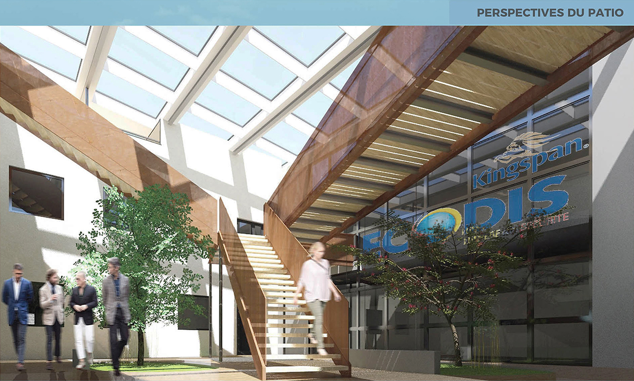 Ce projet allie modernité, fonctionnalité et engagement environnemental en mettant en avant les valeurs et le savoir-faire d’ECODIS KINGSPAN. L’optimisation des espaces, la mise en scène des matériaux et l’intégration d’éléments paysagers participent à la création d’un siège innovant, pensé pour le bien-être des utilisateurs et en parfaite harmonie avec l’image de l’entreprise.
