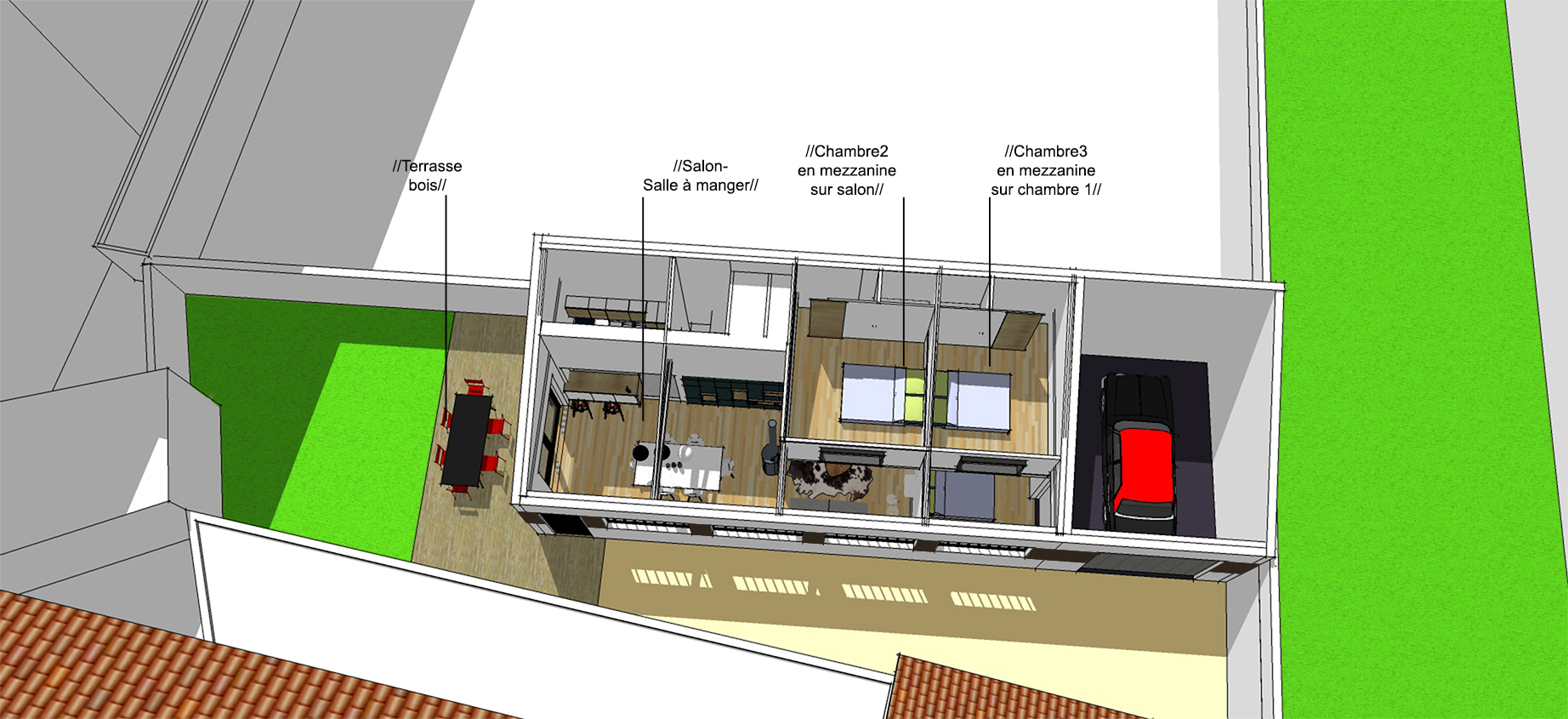 Ce projet développe propose la transformation d’un ancien atelier de menuiserie en un loft familial fonctionnel et lumineux, intégrant trois chambres, un vaste espace de vie ouvert, un garage et une terrasse donnant sur un jardin.