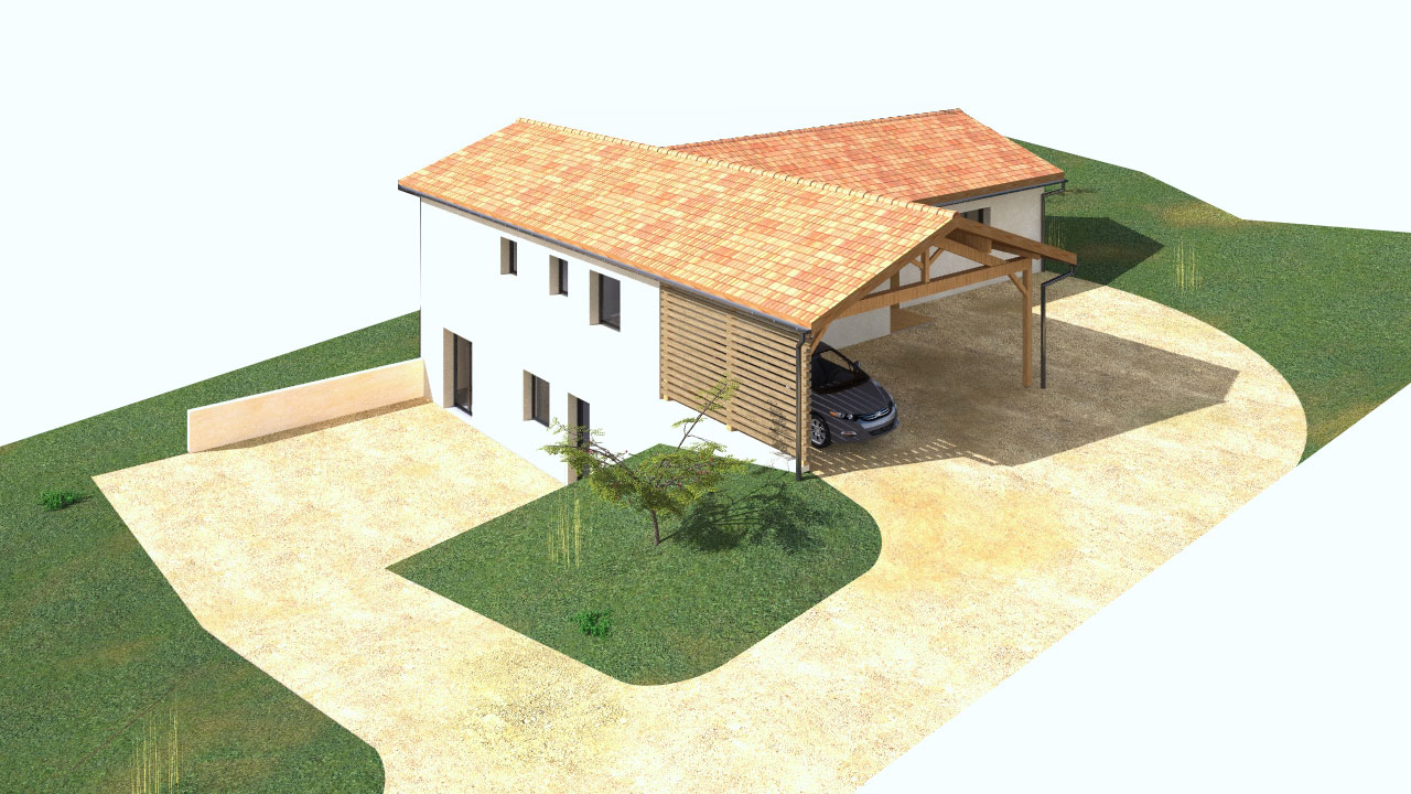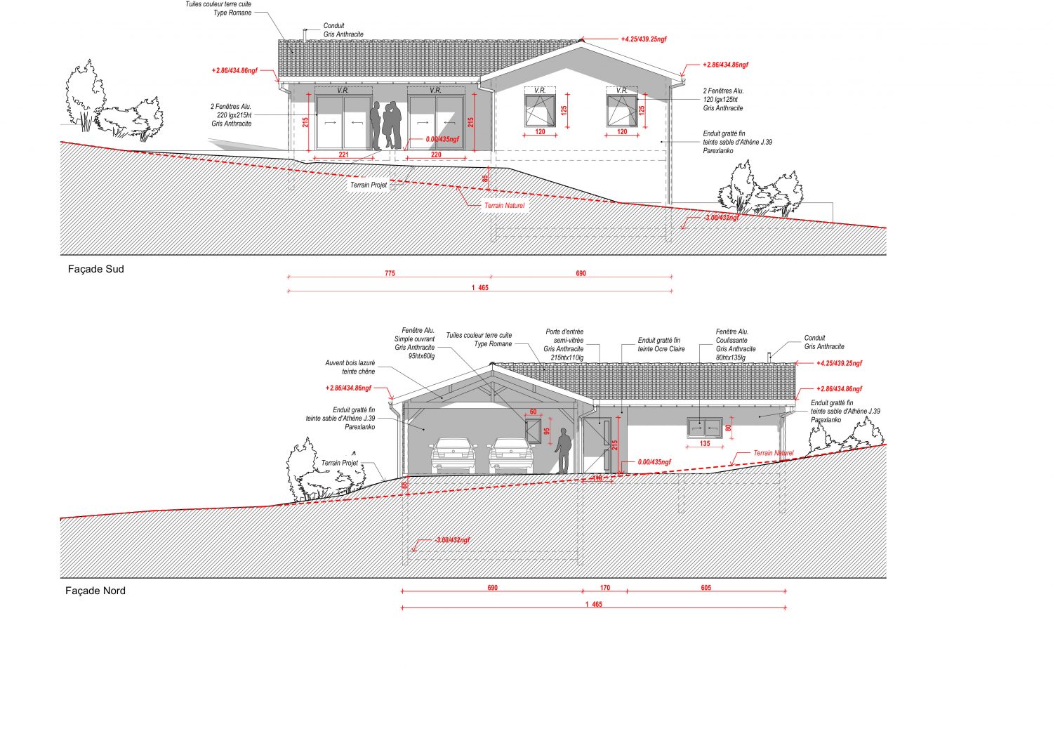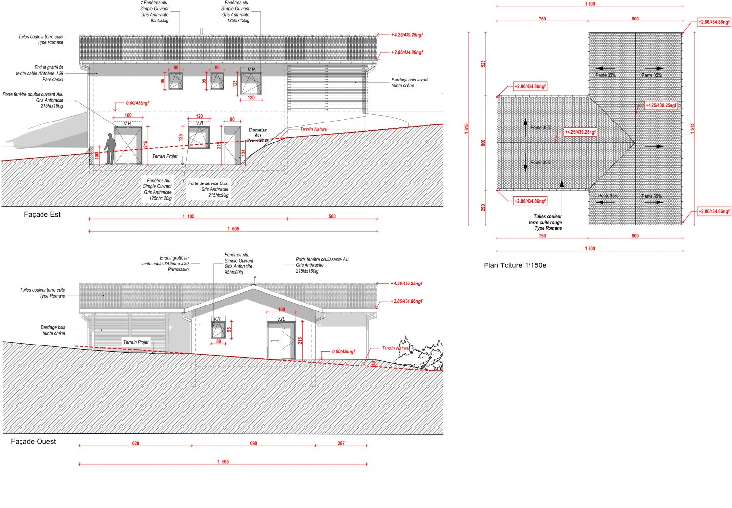 Caractéristiques du projet :PAC air-eau avec plancher chauffant / menuiseries aluminium / charpente traditionnelle