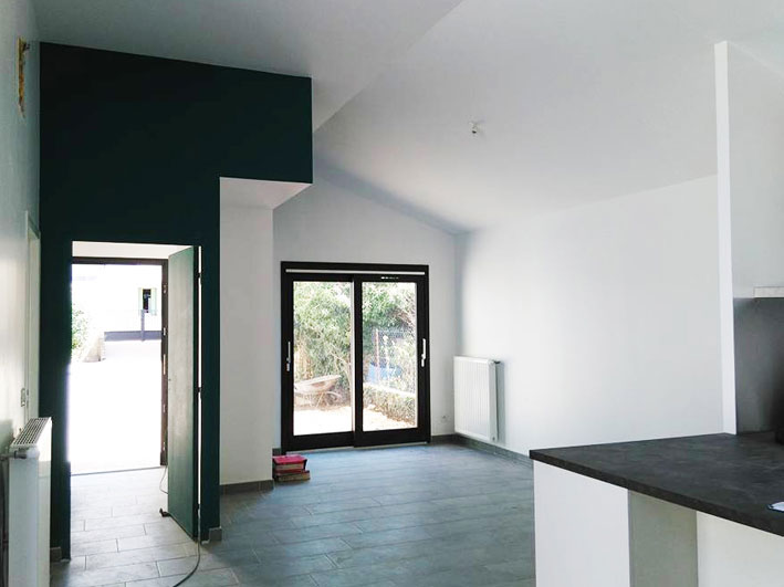 Dans une démarche inclusive et accessible, la maison a été conçue pour répondre aux normes PMR (Personnes à Mobilité Réduite), impliquant un aménagement adapté de l’ensemble du terrain.