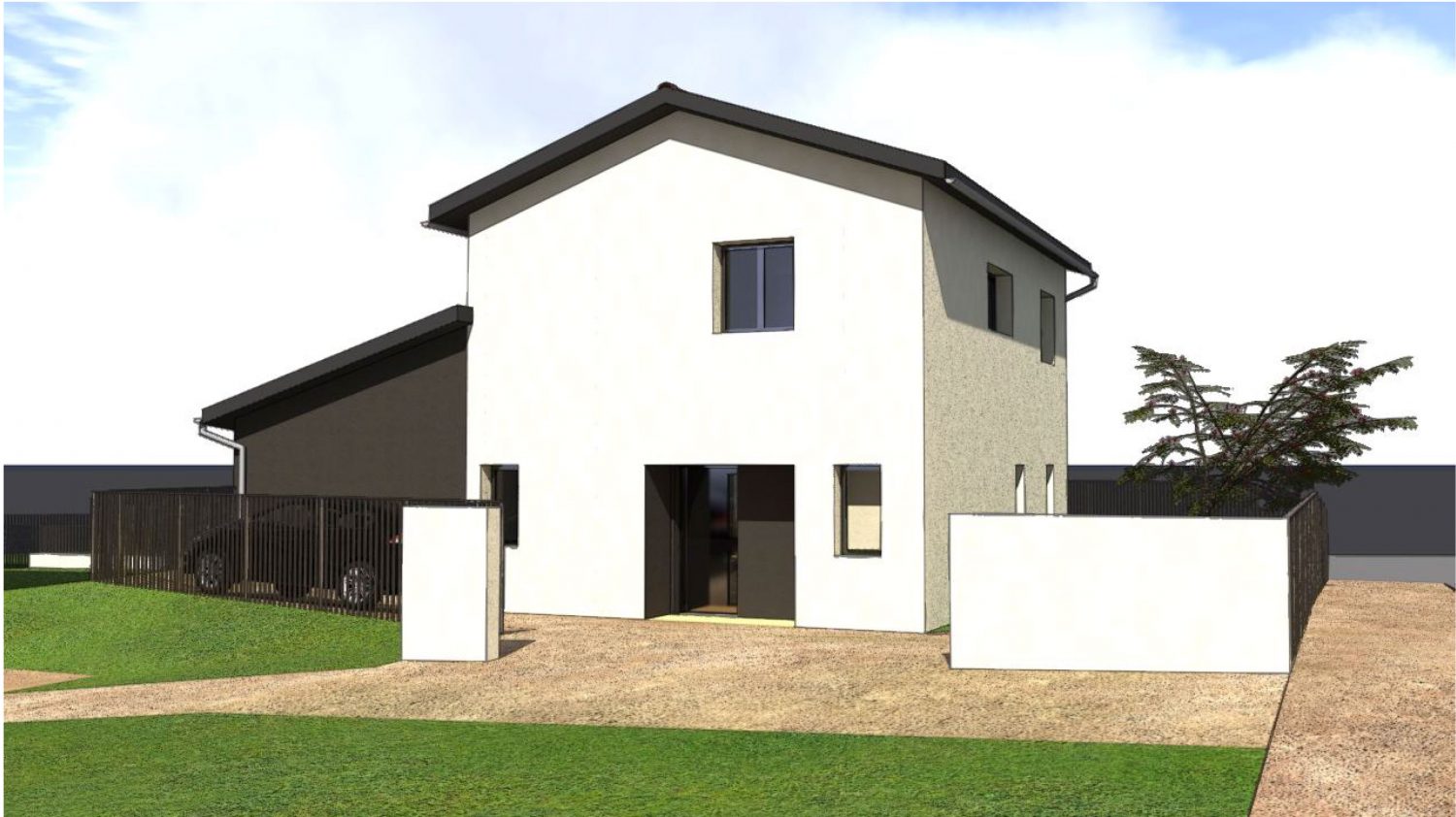 Le projet est situé sur la commune de Millery, où nos clients souhaitaient faire construire une maison à étage. Son implantation et sa forme compacte résultent des contraintes liées à la configuration de la parcelle, située à l’angle de deux rues et de surface restreinte.